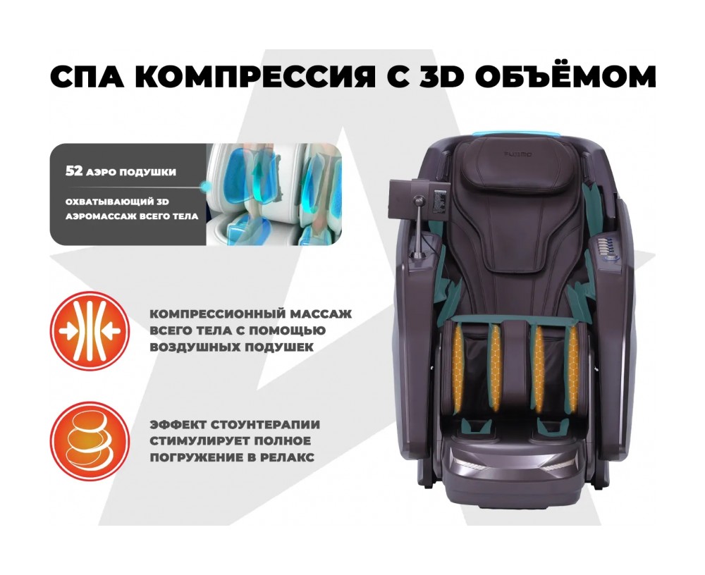 • Полноценный аэромассаж всего тела выполняется многокамерными 3D VOLUMETRIC подушками