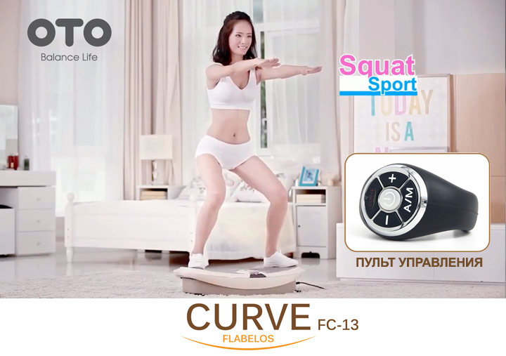 Тренажер OTO FLABéLOS CURVE FC-13 является гораздо более эффективным инструментом в использовании энергии колебаний в области живота, бедер и ягодиц. Это достигнуто благодаря пока единственной на рынке конструкции площадки для ног изогнутой формы, что повышает силу воздействия на нижнюю часть тела примерно на 80% и на верхнюю часть тела на 20%. Уникальный изогнутый дизайн позволяет пользователю размещать широко расставленные ноги перпендикулярно (90 °) к поверхности площадки, в результате чего обеспечивается более интенсивная нагрузка при выполнении упражнений.